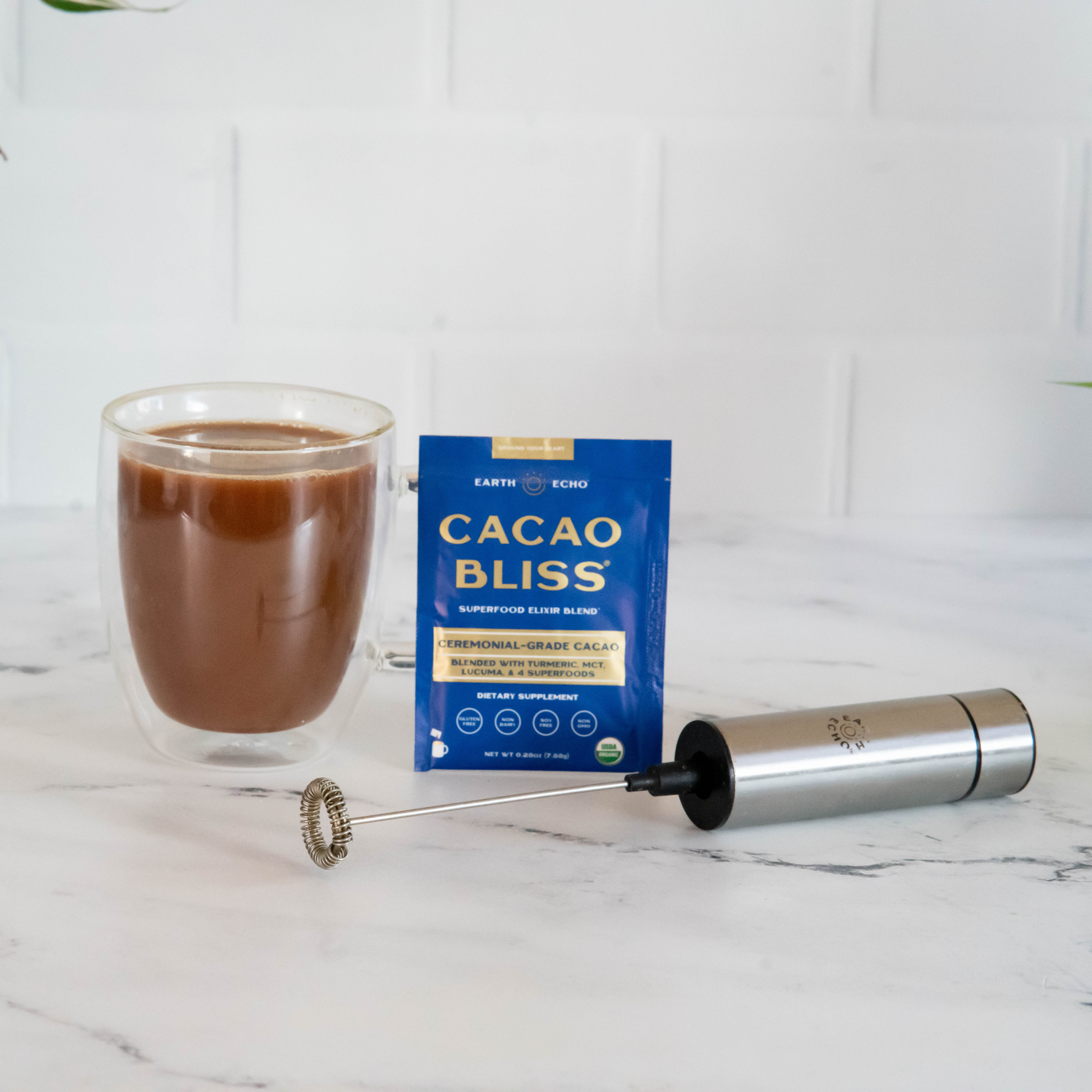 • This easy-to-use frother makes it even more convenient for you to blend your favorite superfoods into a decadent hot or cold drink, or a cool, nourishing smoothie.